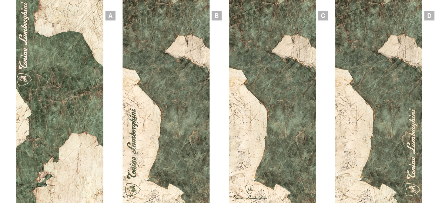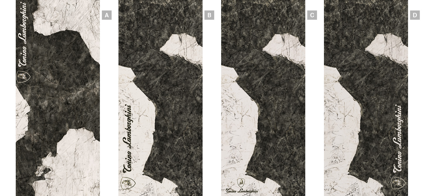 Tonino Lamborghini signs his works, emphasising the quality and design of the slabs, an expression of Made in Italy quality and craftsmanship. MAGMA LOGO features four versions of the Tonino Lamborghini logo along the edges of the slab. Its distinctive design gives the series an exclusive, bold appearance.